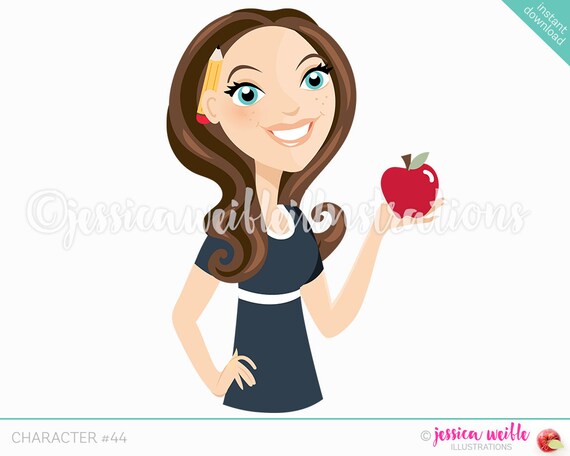 Gratuit Professeur De Brunette Avec Apple Personnage Illustration Etsy